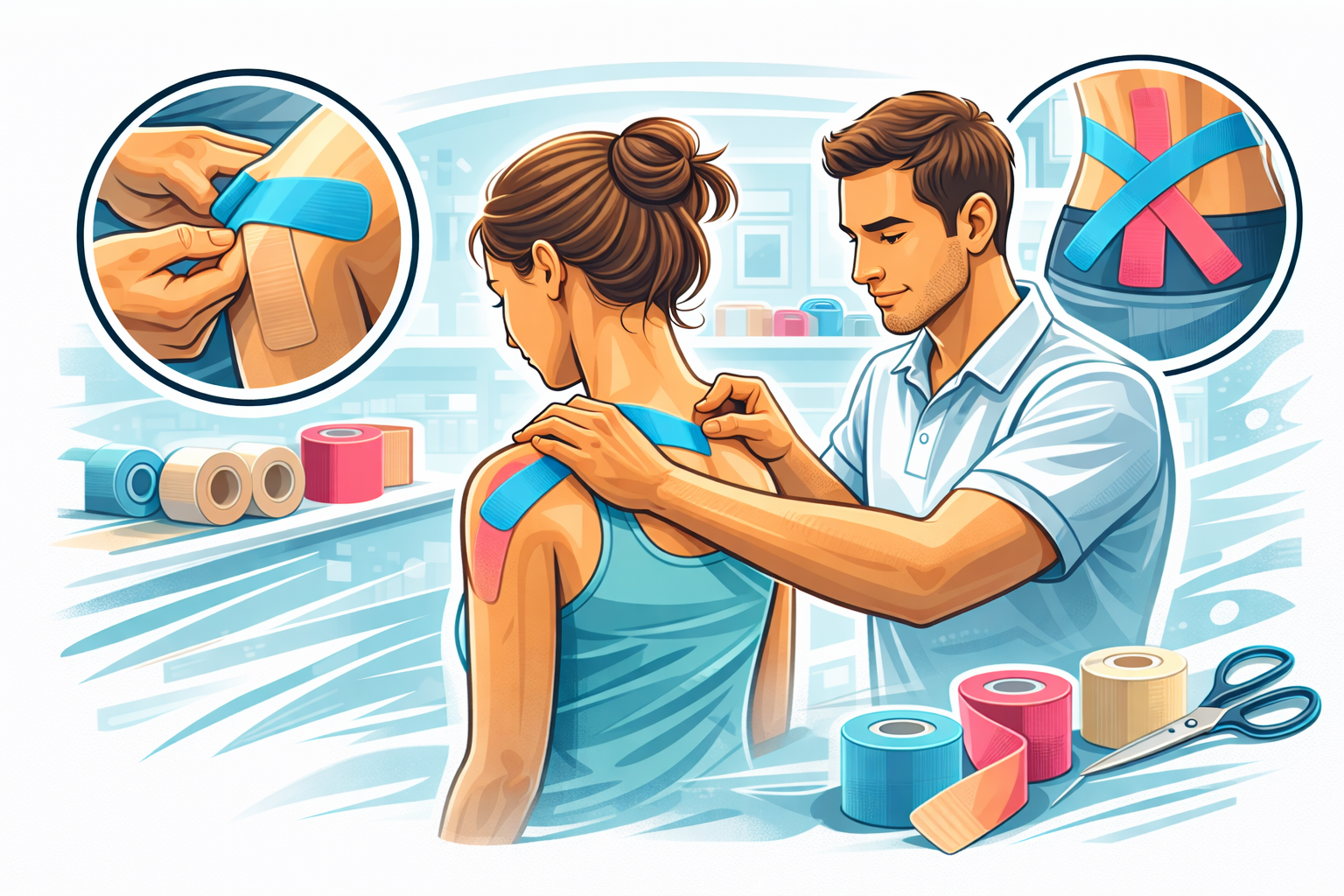 Unterstützen Sie Ihre Heilung und Stabilität mit gezieltem Taping. Es fördert die Durchblutung, reduziert Schwellungen und entlastet beanspruchte Muskeln und Gelenke effektiv.