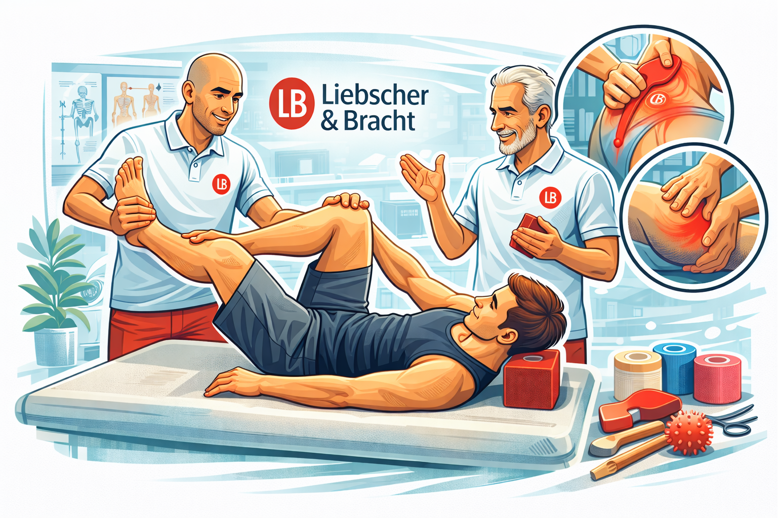 Die Liebscher-&-Bracht-Therapie ist eine ganzheitliche Methode zur Schmerzbehandlung, die auf die Ursachen von Schmerzen abzielt. Durch gezielte Drucktechniken (Osteopressur), Dehnübungen und aktive Bewegung werden muskulär-fasziale Spannungen reduziert. Ziel ist es, Schmerzen nachhaltig zu lindern, die Beweglichkeit zu verbessern und den Körper wieder in Balance zu bringen.